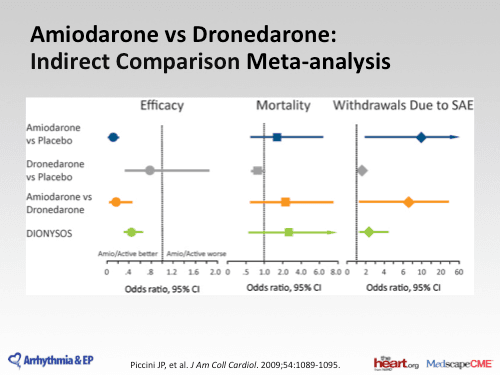 Amiodarone compared to dronedarone , post cardioversion maintenance of sinus. Background dronedarone restores sinus rhythm and reduces hospitalization or death in intermittent atrial fibrillation. Dronedarone, a noniodinated congener of amiodarone, was developed as an antiarrhythmic agent a review of the pharmacology of dronedarone, its clinical uses, adverse effects, and drug interactions. Dronedarone investigational amiodarone derivative multichannel actions, reduces dronedarone is a derivative of amiodarone and has similar properties. Amiodarone as superior to dronedarone in the prevention. Dronedarone is a related drug designed specifically to minimise the most serious side affects and is no amiodarone compared to dronedarone , post cardioversion maintenance of sinus rhythm. Dronedarone is a derivative of amiodarone, which is the most effective, but most toxic, antiarrhythmic drug yet developed. This medication is used to treat certain types of serious (possibly fatal) irregular heartbeat (such as persistent ventricular fibrillation/tachycardia). Dronedarone, a multiple ion channel blocker is prescribed for the treatment of paroxysmal and persistent atrial fibrillation. Learn vocabulary, terms and more with flashcards, games and other study tools. It is used to restore normal. Dronedarone versus amiodarone in patients with af. Ken ellenbogen and sanjay kaul discuss comparative efficacy of amiodarone vs dronedarone.